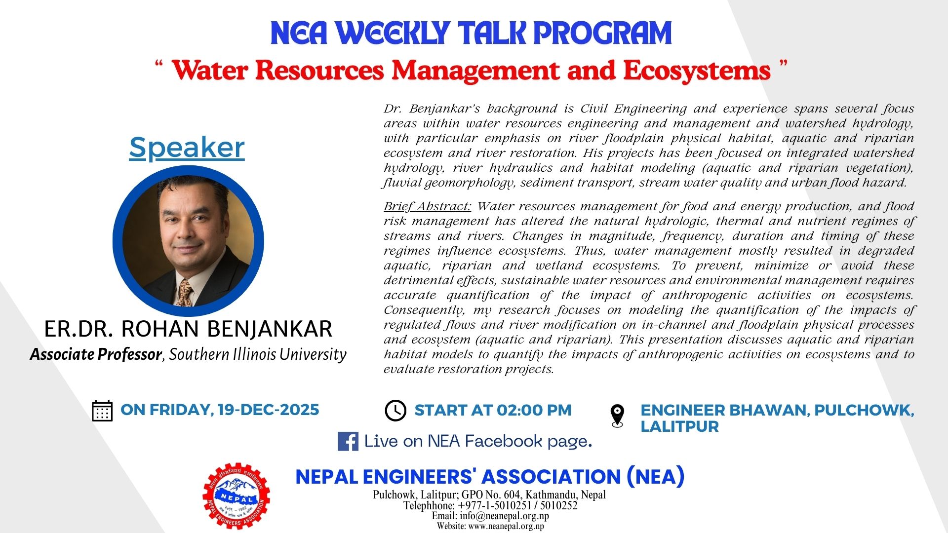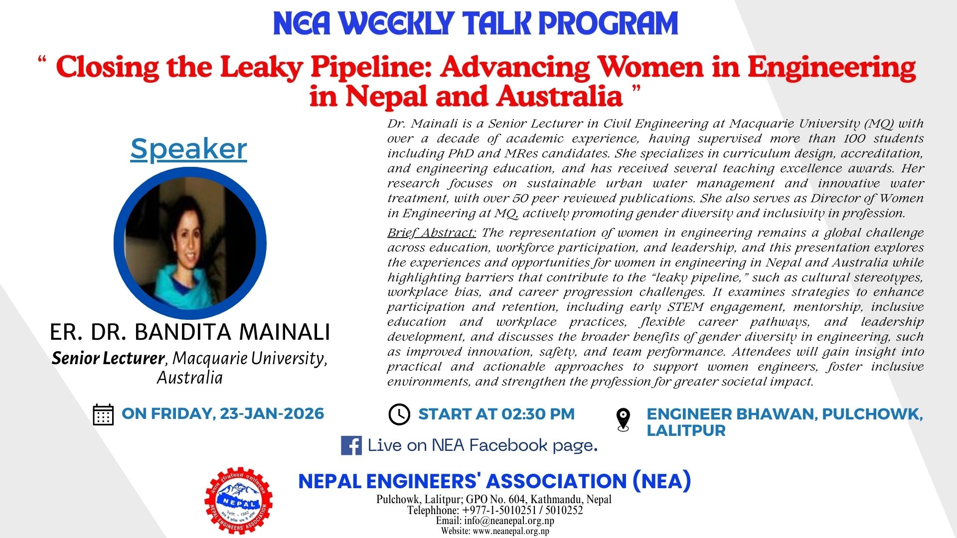 To attend the weekly talk program organized by the Nepal Engineers' Association (NEA), you would typically follow these steps:
