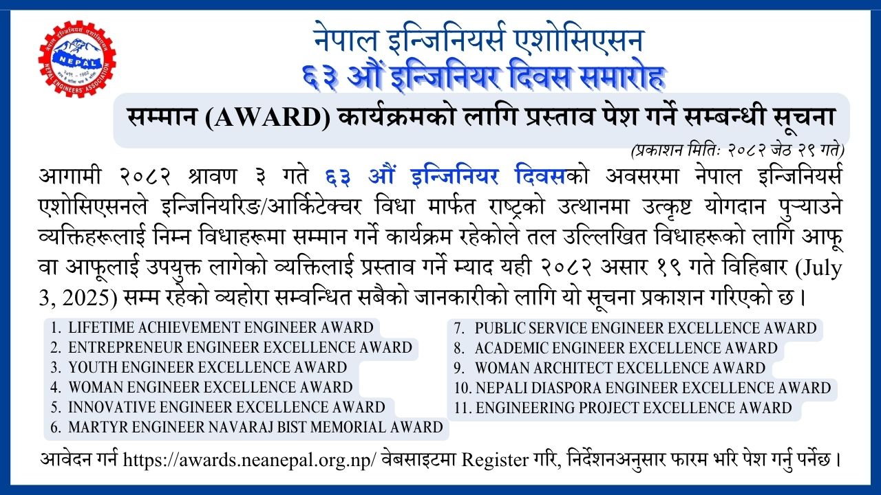 8 | सम्मान (Award) कार्यक्रमको लागि प्रस्ताव पेश गर्ने सम्बन्धी सूचना । | JPG | Download |